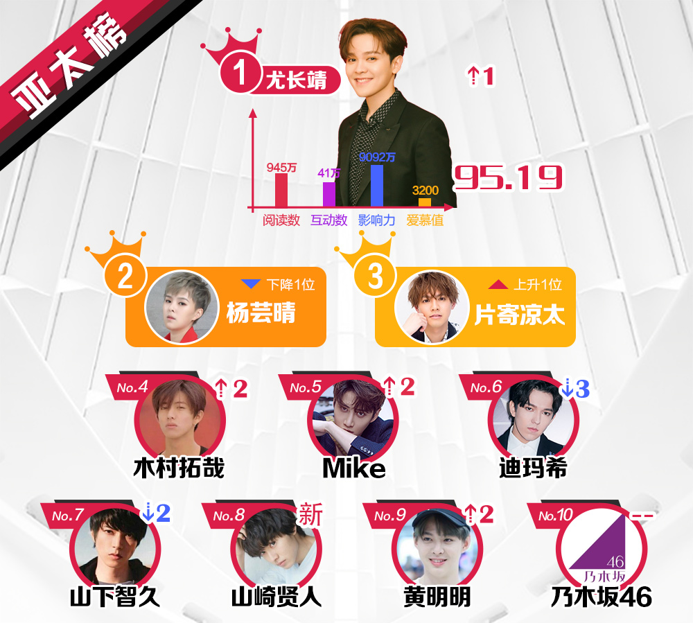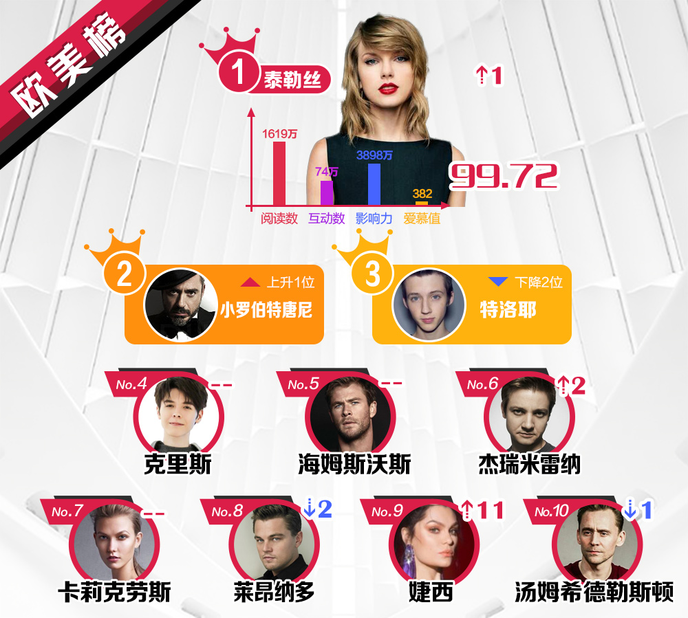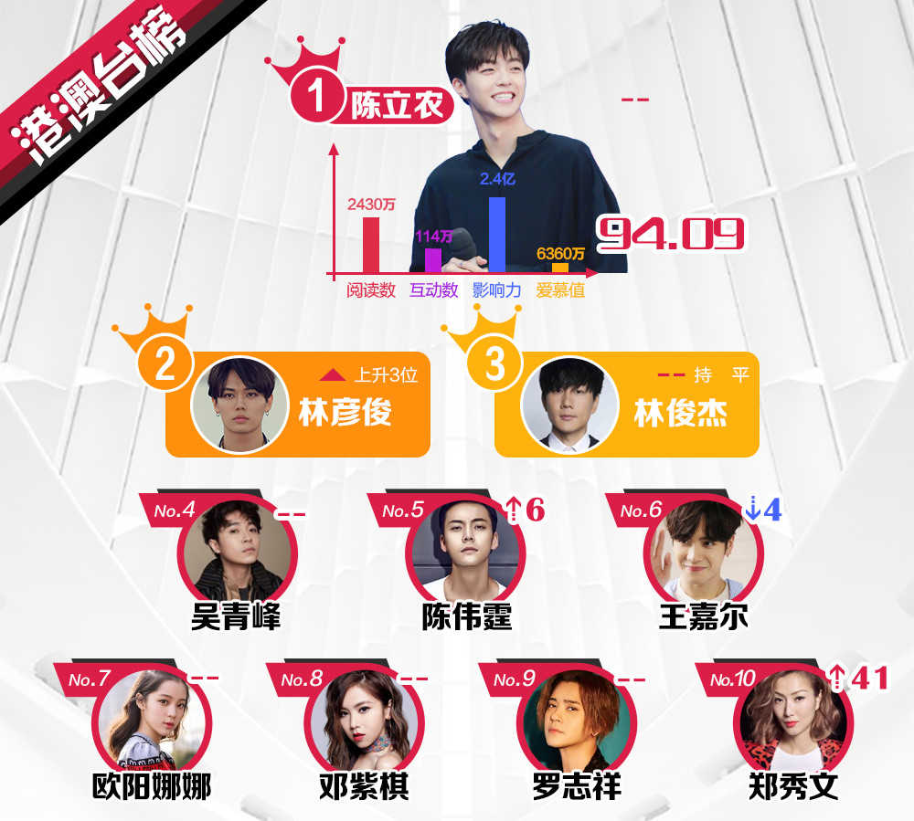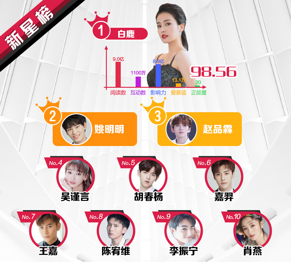 Kết quả dựa trên dữ liệu tìm kiếm, tương tác ở Weibo, thống kê về số lượng, ảnh hưởng xã hội và chỉ số giá trị yêu mến từ người hâm mộ của các nghệ sĩ nổi tiếng sau 1 tuần.