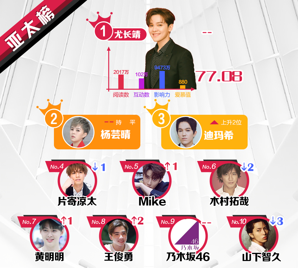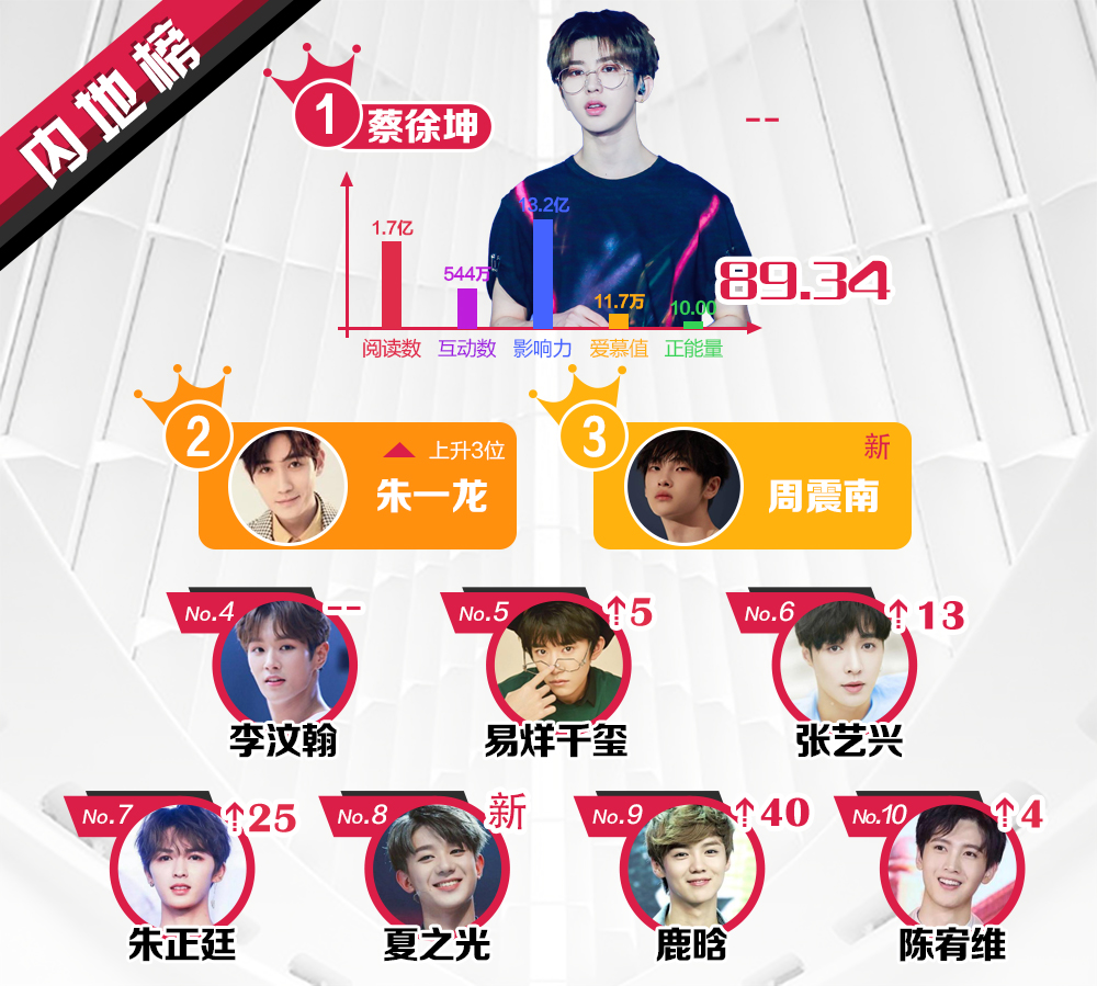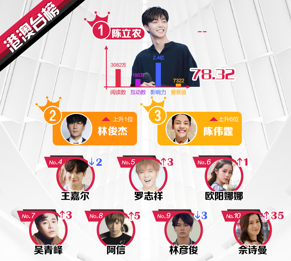 Vào ngày 18/06 vừa qua, Sina đã công bố xếp hạng cho những ngôi sao ở khu vực Đại Lục Trung Quốc, Hong Kong, Macao - Đài Loan, các quốc gia châu Á - Thái Bình Dương và châu Âu - Hoa Kỳ được quan tâm nhất trên mạng xã hội Weibo từ ngày 11/06 đến 17/06.