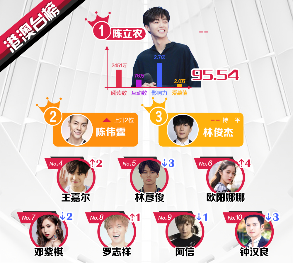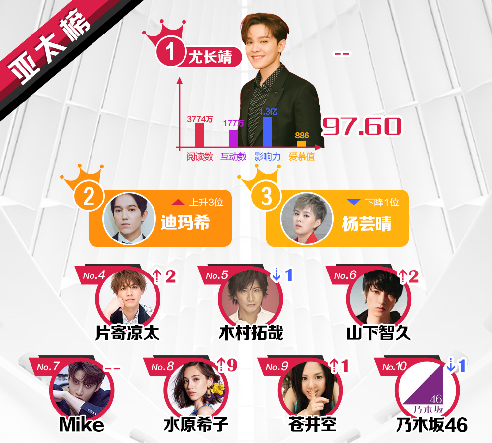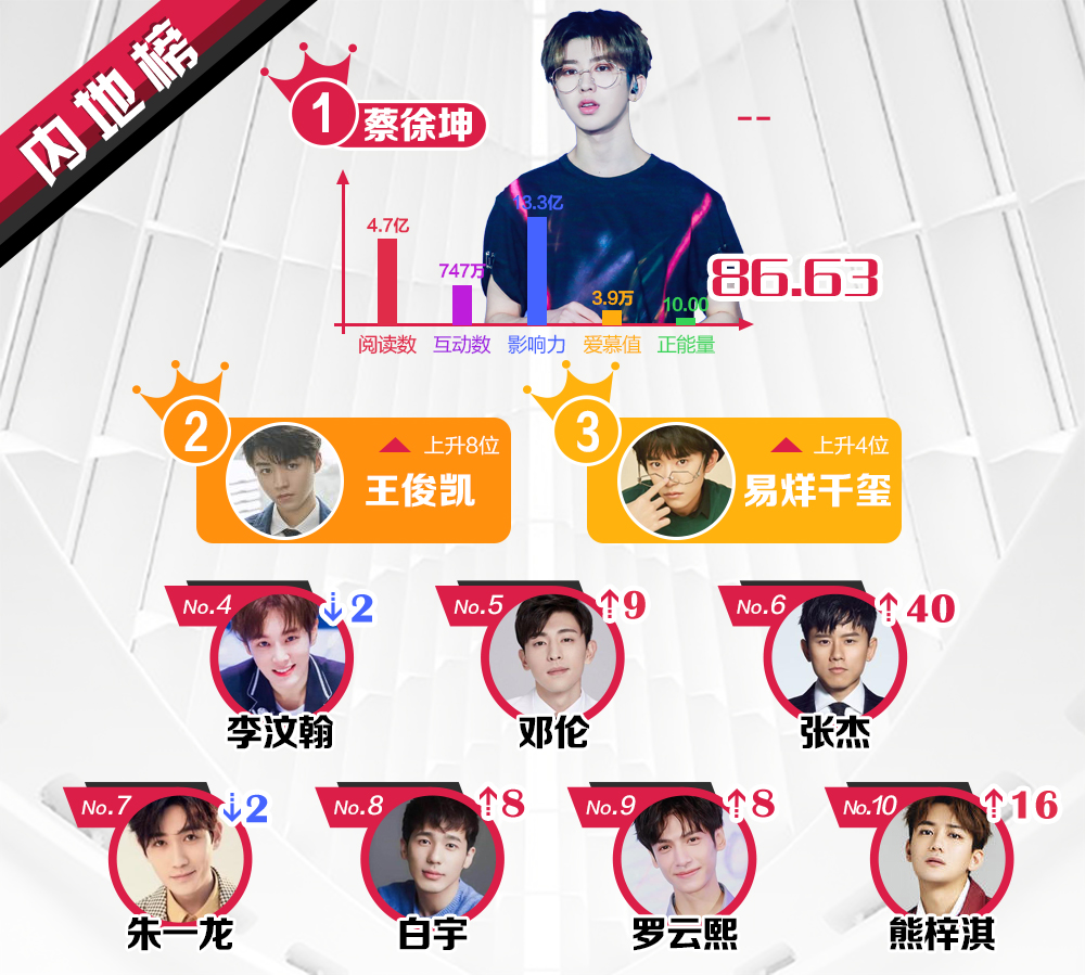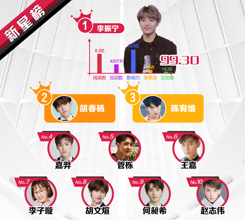 Kết quả dựa trên dữ liệu tìm kiếm, tương tác ở Weibo, thống kê về số lượng, ảnh hưởng xã hội và chỉ số giá trị yêu mến từ người hâm mộ của các nghệ sĩ nổi tiếng sau 1 tuần.