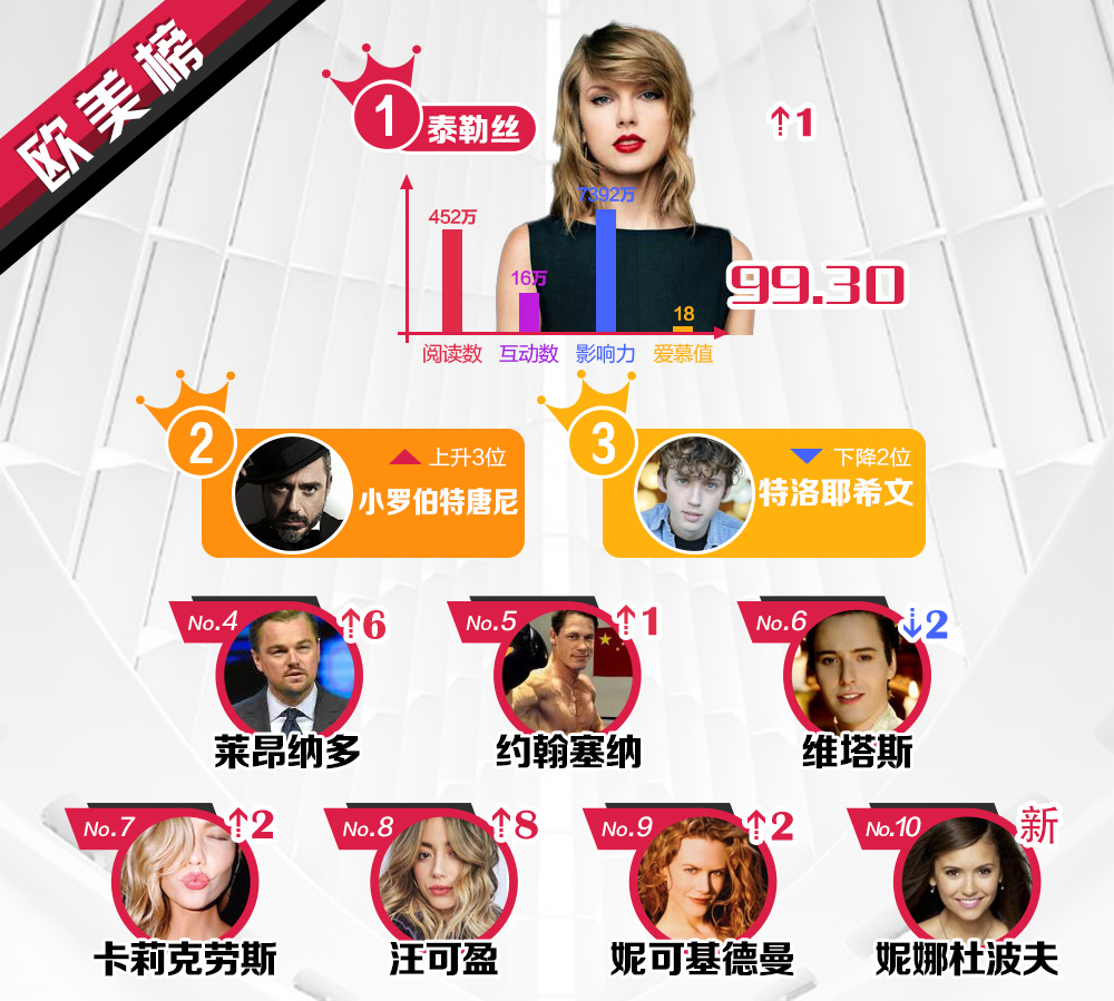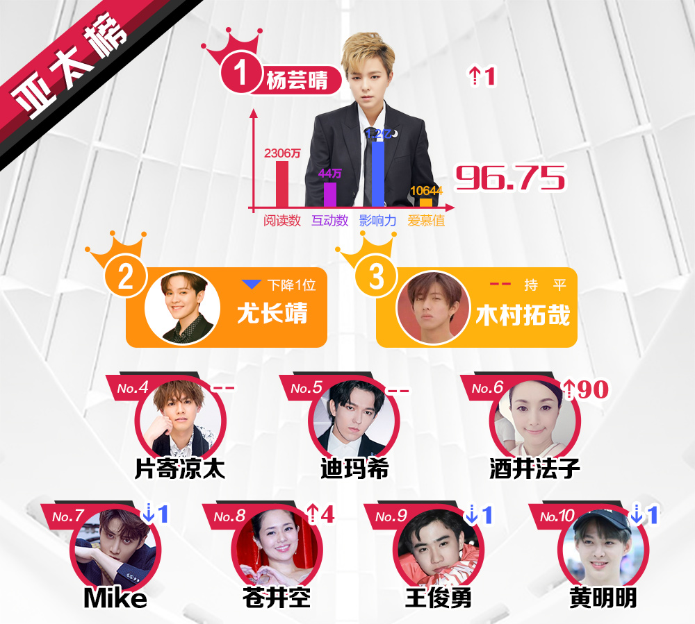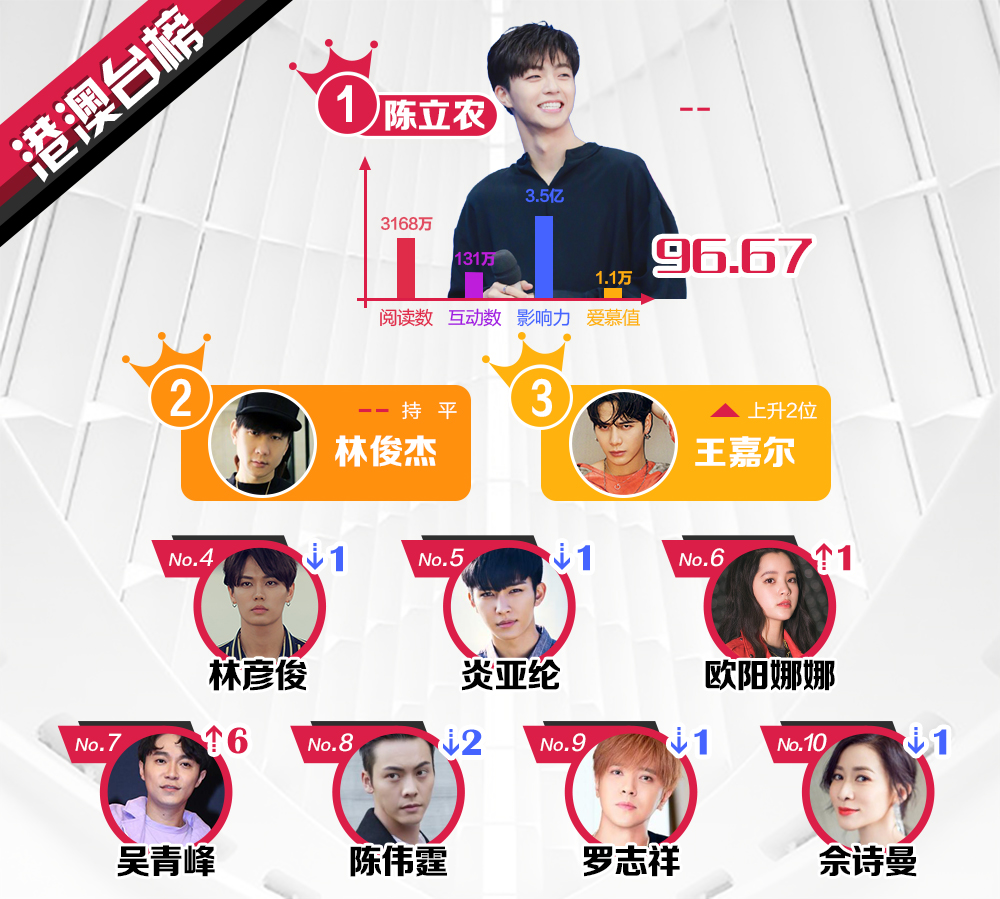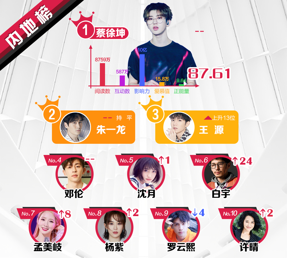 Đến hẹn lại lên, sau một tuần, Sina Entertainment tiếp tục công bố bảng xếp hạng ngôi sao quyền lực nhất trên mạng xã hội Weibo tuần 2 tháng 1 năm 2019 ở các khu vực Trung Quốc, Hồng Kông, Macao - Đài Loan, các quốc gia châu Á - Thái Bình Dương và châu Âu - Hoa Kỳ. Kết quả này hoàn toàn dựa vào tổng số điểm từ chỉ số truyền thông, tương tác, lượt xem, chia sẻ, yêu thích và lượt tìm kiếm, đánh giá trên Weibo từ 08/01 đến hết ngày 14/01. Xem qua TOP 10 ngôi sao quyền lực dưới này: