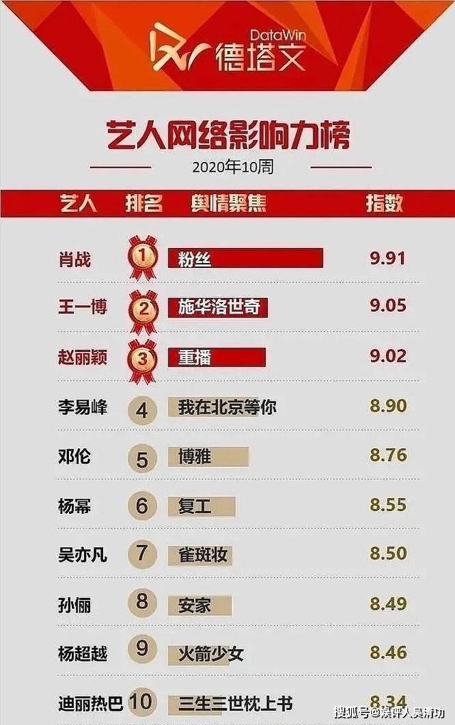Gần đây, bảng xếp hạng sức ảnh hưởng của nghệ sỹ trên mạng xã hội tuần 10 năm 2020 được đăng tải. Trong đó, Tiêu Chiến tiếp tục khẳng định sức hút của mình khi chiếm vị trí thứ nhất, Vương Nhất Bác vị trí thứ hai và thứ ba là Triệu Lệ Dĩnh.