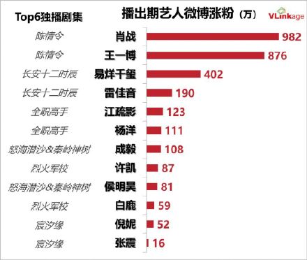 Nghệ nhân có lượng fan tăng mạnh trên weibo trong thời gian phim công chiếu: