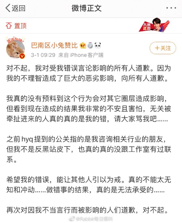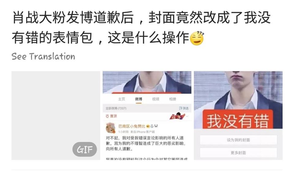 Hậu quả của sự việc quá lớn buộc fan Tiêu Chiến phải xin lỗi để xoa dịu dư luận. Một fan lớn của Tiêu Chiến đăng một bài viết rất dài bày tỏ sự “hối tiếc” nhưng nội dung vô cùng lan man, không có trọng tâm cũng chẳng hề nêu ra lỗi của mình. Ngay sau đó, người này âm thầm đổi avatar hình thần tượng kèm theo biểu ngữ: “Tôi không có sai”, kéo theo hàng loạt fan khác của Tiêu Chiến đổi theo đồng loạt.
