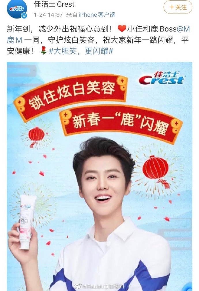 Ngay sau đó, trên tài khoản weibo Giai Khiết Sĩ cũng đem hình ảnh của Tiêu Chiến thay thế bằng Lộc Hàm, thái độ của thương hiệu như ngầm cắt đứt mối quan hệ với nam minh tinh Trần tình lệnh, nhằm thoát khỏi cơn bão tẩy chay!