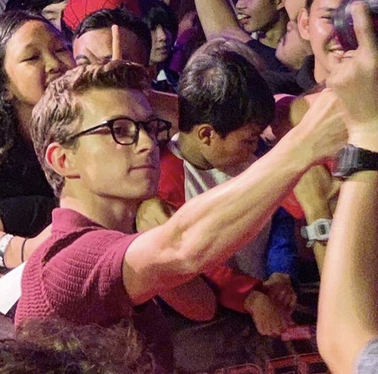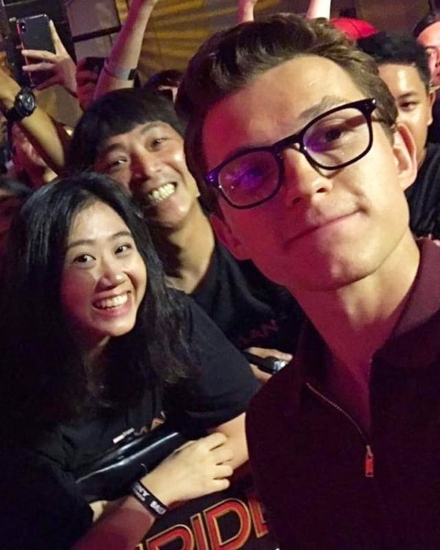 Tom Holland chụp ảnh với fan.
