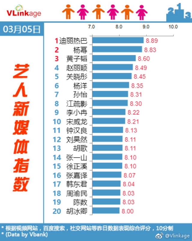 Vị trí thứ 7 thuộc về Tôn Di, thứ 15 thuộc về Từ Chính Hy và thứ 17 thuộc về Hàn Đông Quân.