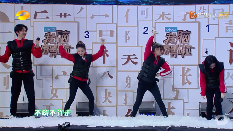 Sau khi đấu võ mồm, các khách mời lại có cơ hội đấu võ chân tay. Khách mời sẽ được dãn gân dãn cốt với các thử thách kéo cơ, gập người cực kỳ chuyên nghiệp. Trong khi Mông Mông dễ dàng co chân gập người thì Hoắc Tôn lại có chút loạng choạng nhưng may sao cuối cùng cũng thành công gập người nhỏ hơn một góc 90 độ.