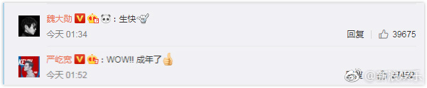Diễn viên Ngụy Đại Huân: “Sớm thành công nha”, Nghiêm Khoan: “Wow! Người lớn rồi”.