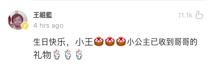 Vương Tổ Lam: “Chúc mừng sinh nhật, Tiểu Vương. Công chúa bé nhỏ đã nhận được món quà từ ca ca”.
