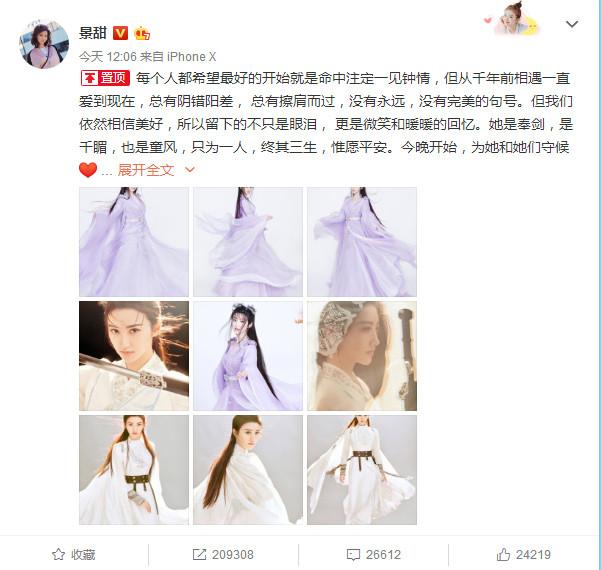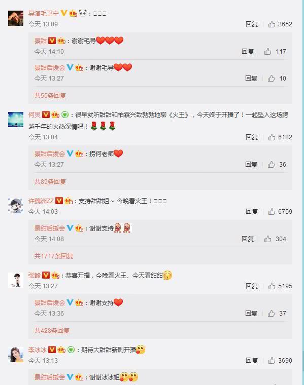 Ngay sau khi bài này của Cảnh Điềm được đăng lên, những cái tên nổi tiếng trong ngành giải trí như Hà Cảnh, Dương Mịch, Địch Lệ Nhiệt Ba, Vương Nguyên, Vương Tuấn Khải, Hoàng Tử Thao, Trần Học Đông, Hứa Ngụy Châu, Bao Bối Nhĩ, Lý Băng Băng, Trần Hiểu, Dương Tử, Trương Hàn, Lý Trị Đình, Trương Nhất Sơn, Huỳnh Hiểu Minh, Hám Thanh Tử…. đều vì Cảnh Điềm mà chia sẻ, tuyên truyền, để lại lời bình luận trong bài viết phim mới giúp cô.