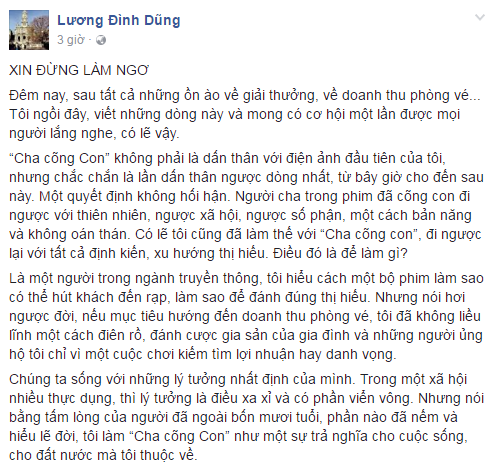 Một đoạn trong chia sẻ của đạo diễn Lương Đình Dũng.
