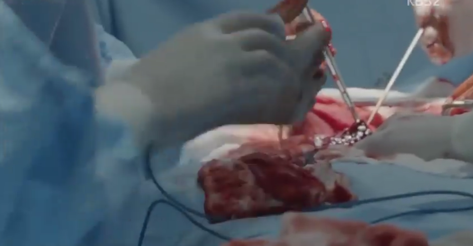 Cảnh đối phẫu thuật đầy máu me ở bản Hàn Quốc.