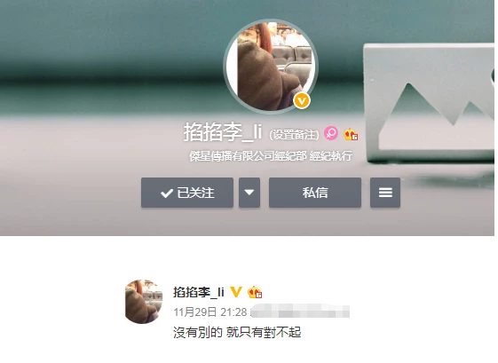 Tối ngày 29/11, người trợ lý luôn bên cạnh Cao Dĩ Tường đã cập nhật trạng thái mới nhất của mình. Cô chỉ viết ngắn gọn vài chữ: “Không có gì khác, chỉ có một lời xin lỗi“. Hiện tại hashtag Trợ lý Cao Dĩ Tường đăng bài đã đứng ở vị trí số 1 trên hotsearch.