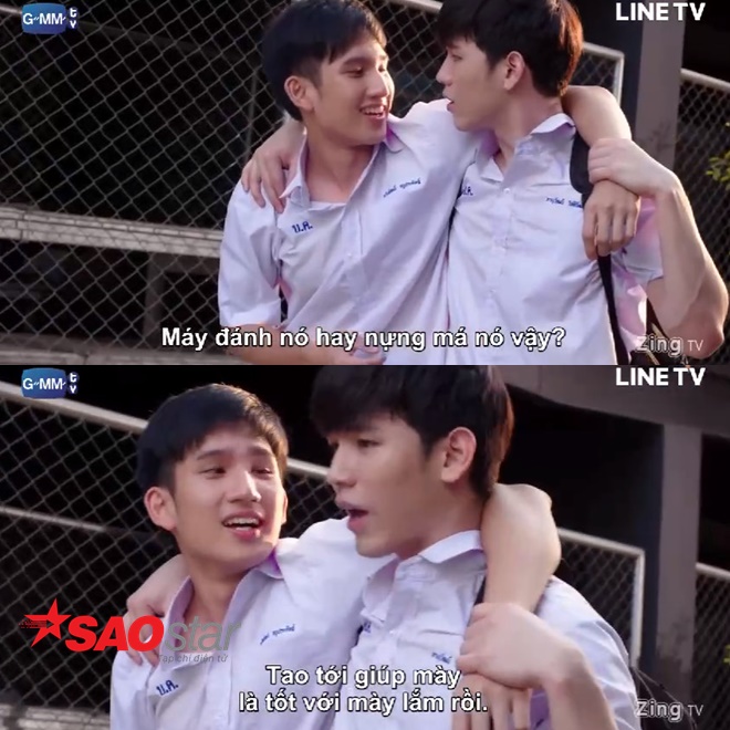 Cặp đôi Kao và Pit đã “phải” hôn nhau rất nhiều lần. Dưới góc nhìn của hủ nữ, đôi trẻ còn hôn mãnh liệt hơn, trực diện hơn và quyết liệt hơn trên phim. Và chẳng biết Pit đã “mạnh mẽ” đến mức nào mà Kao còn bị rách cả quần…
