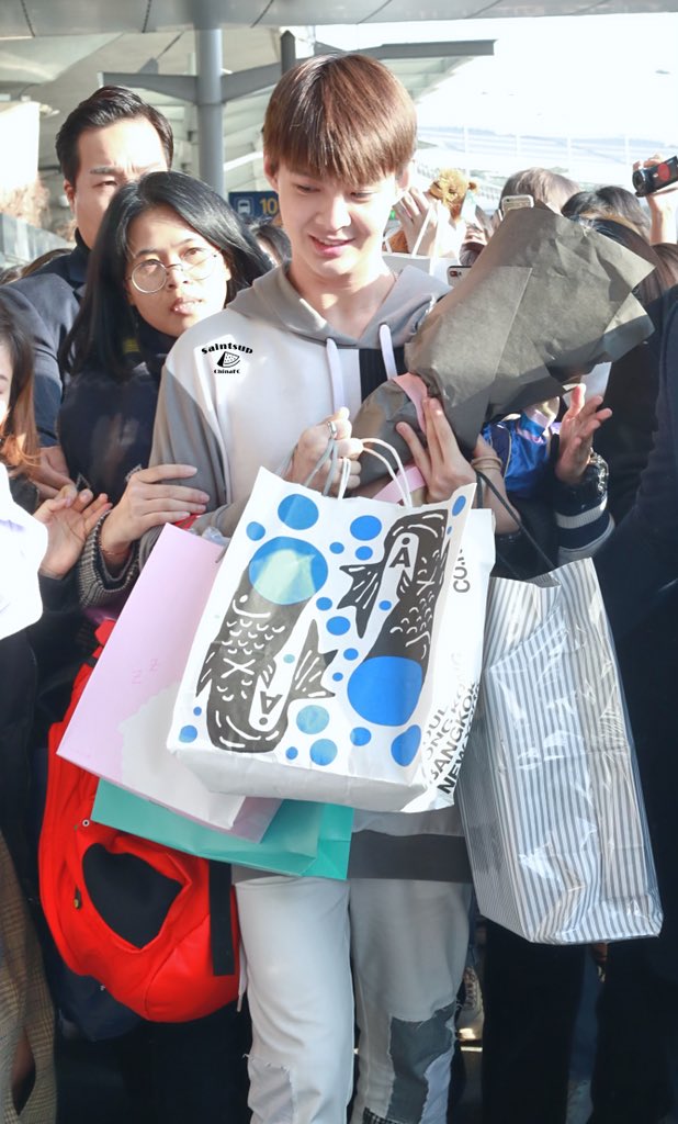 Không chỉ có lượng fan đông đảo đến đón tại sân bay mà cả ba còn nhận không ít quà của fan.