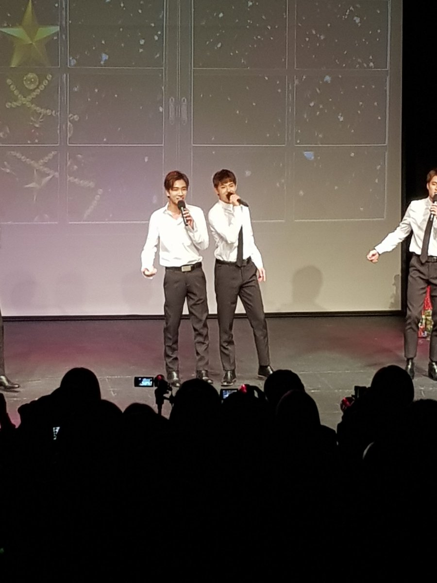 Sau đó các diễn viên thay trang phục khác để bắt đầu các màn trình diễn đã chuẩn bị cho fanmeeting lần này bao gồm 1 tiết mục tập thể và 2 tiết mục song ca. Lần này, Saint sẽ cùng song ca với Perth chứ không lẻ loi trên sân khấu như fanmeeting lần trước ở Thái. Cả hai nhìn nhau hát vô cùng tình cảm, ăn ý. Còn cặp đôi Mean - Plan cũng biểu diễn lại ca khúc So Mean mà cả hai đã làm náo loạn sân khấu fanmeeting Thái Lan trước đó với phiên bản không có bong bóng nhưng vẫn đủ độ tình tứ, ngọt ngào.