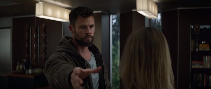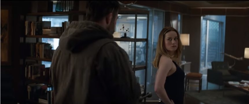Trong lúc tất cả trầm lặng, Rhodey đặt ra câu hỏi liệu Carol có thể làm gì mà tự tin mạnh hơn các Avengers còn lại để chiến đấu với Thanos. Điều này cũng khiến Thor lần đầu đối mặt Captain Marvel, triệu hồi chiếc búa thần ngay sát bên mà sắc mặt cô nàng không hề biến sắc. Đây cũng chính là thời khắc điều thú vị diễn ra. Nếu đeo tai nghe hoặc bật âm lượng hết cỡ, bạn có thể nhận ra lúc Thor bước đến trước mặt Carol (giây thứ 48), có một âm thanh vọng lại: “Tôi có thần giao cách cảm”.
