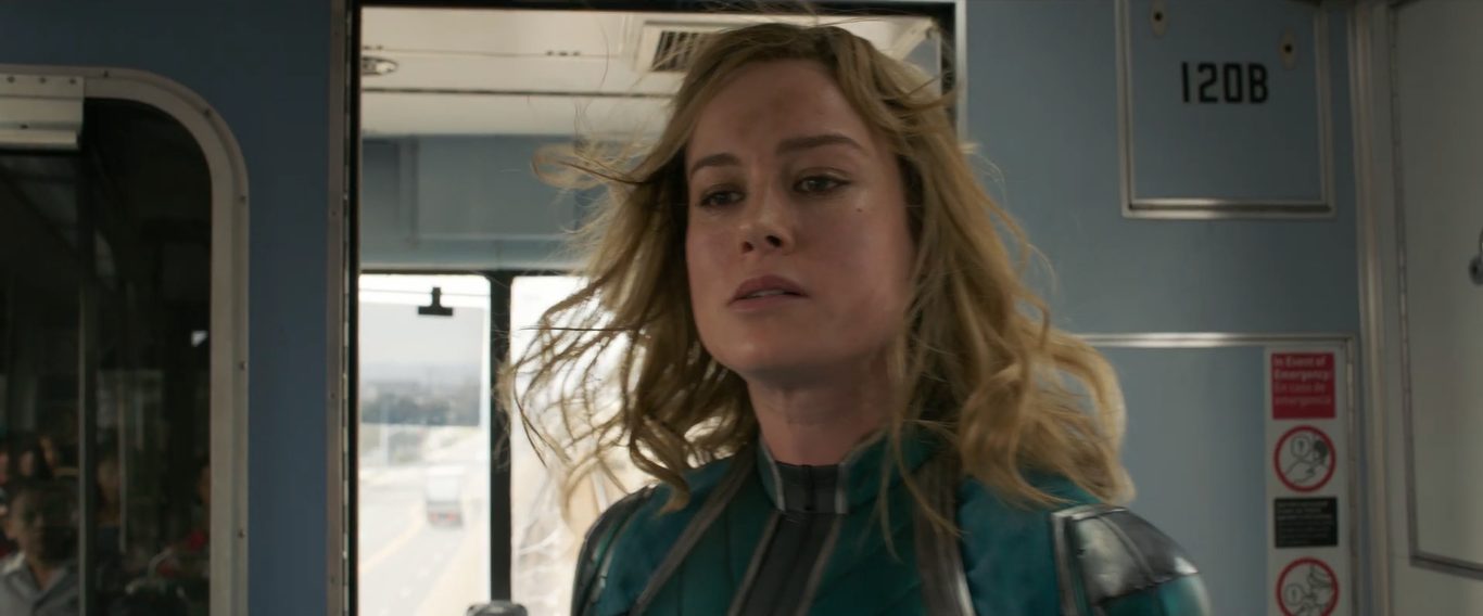 Trong clip, Captain Marvel trong trang phục màu xanh lục của biệt đội Starforce đang truy đuổi một người đàn ông áo đỏ, chắc chắn là do một tên Skrull giả dạng thành. Hai người giằng co với nhau trên nóc một chiếc tàu điện đang chạy. Dù bị tên Skrull hất suýt ngã khỏi tàu, nhưng Captain Marvel vẫn nhanh chóng leo lên và dùng chiêu phóng năng lượng tấn công đối thủ. Khi tàu sắp chui vào hầm chật hẹp, cô cũng nhanh chóng phá một lỗ hổng trên mái tàu và nhảy xuống hết sức điệu nghệ.