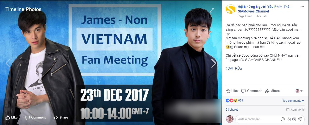 Thông tin về fan-meeting của Nonkul và James được fanpage Hội Những Người Yêu Phim Thái đăng tải.