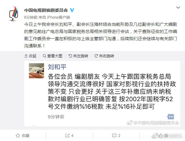 Ngày 29 tháng 11, một vị chế tác - đạo diễn nổi tiếng Trung Quốc đăng lên bài viết tiết lộ trước mắt Cục thuế Hoành Điếm đang tiến hành “tự tra tự củ” (Ý chỉ tự mình phản tỉnh, tự phát hiện lỗi lầm mà sửa đổi), trực tiếp cho biết ngành ảnh thị (truyền hình, điện ảnh) trong thời đại hôm nay là “lốc xoáy trung tâm”. Từ đó với việc tự mình điều chỉnh hành vi là do Tổng cục thuế vụ truyền xuống, cần phải tự giác bổ sung phí dụng và tiền phạt trước tháng 12.