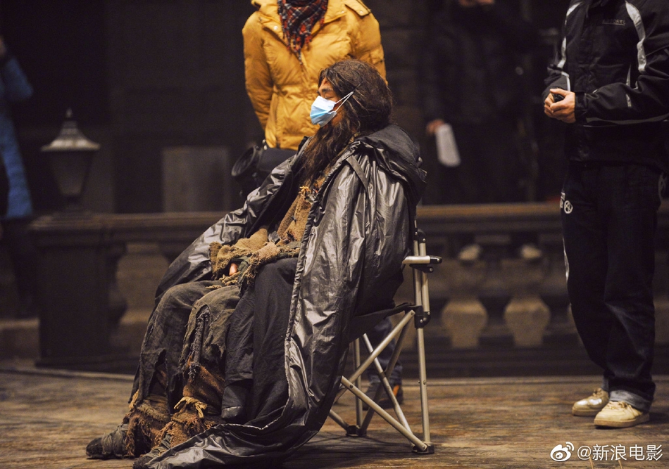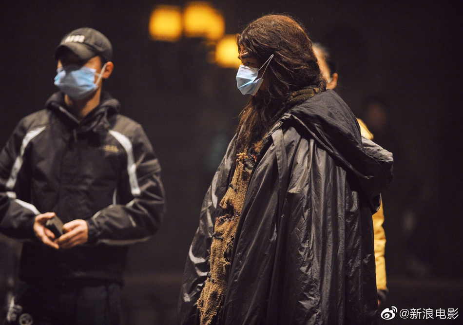 Nam diễn viên chính Triệu Văn Trác trong phim điện ảnh Tô Khất Nhi trong lúc chờ đợi đến thời gian diễn của mình đã đeo khẩu trang và nhắm mắt để dưỡng thần, nghỉ ngơi.