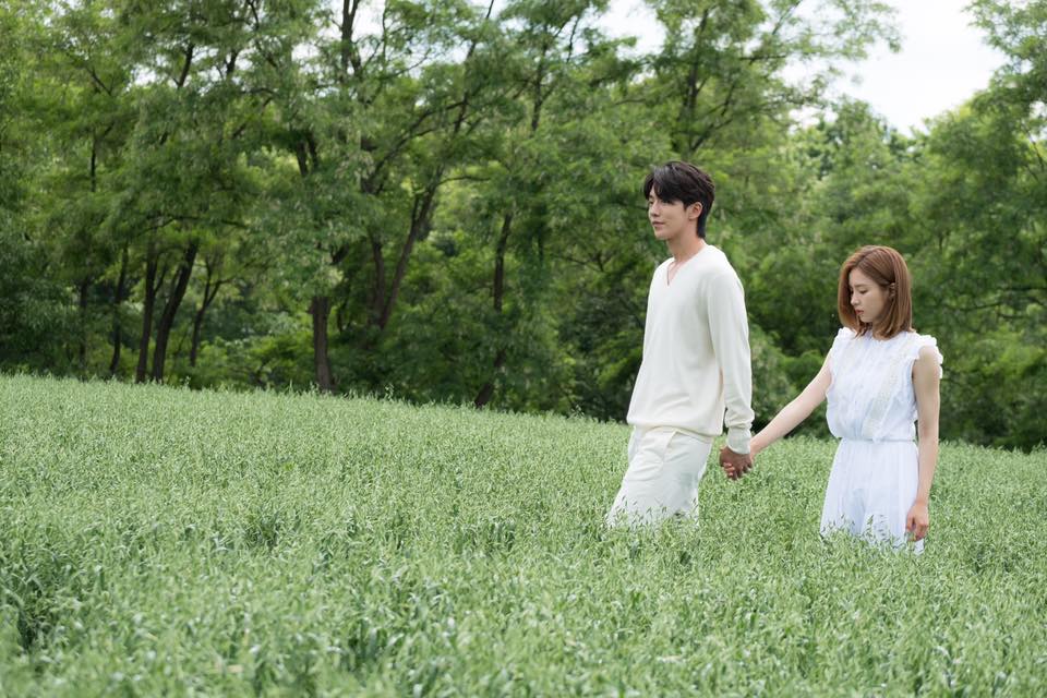 Nam Joo Hyk và Shin Se Kyung bình yên dắt tay nhau đi giữa cánh đồng xanh ngát.