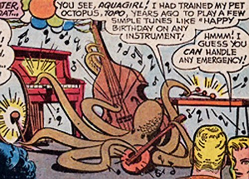 Hình ảnh con bạch tuộc chơi trống này gợi nhớ rất nhiều đến một nhân vật “cũ ơi là cũ” - Topo - trong truyện tranh Aquaman.
