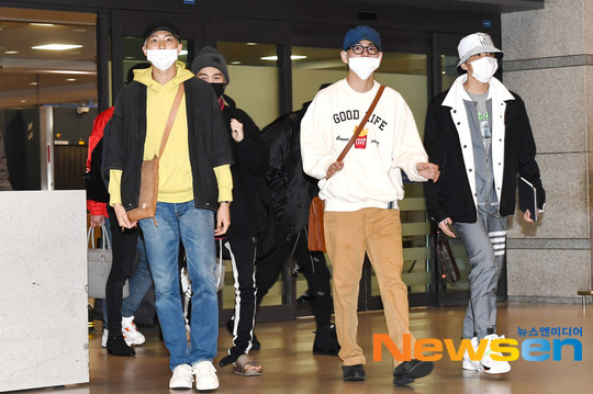 Các thành viên của nhóm BTS trở về quê nhà sau chuyến lưu diễn mang tên BTS WORLD TOUR 'LOVE YOURSELF' HONGKONG EDITION ở Hong Kong.