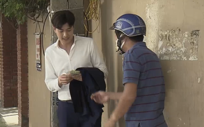 NSƯT Trọng Trinh vào vai ông xe ôm chở Vũ trong “Về nhà đi con”.