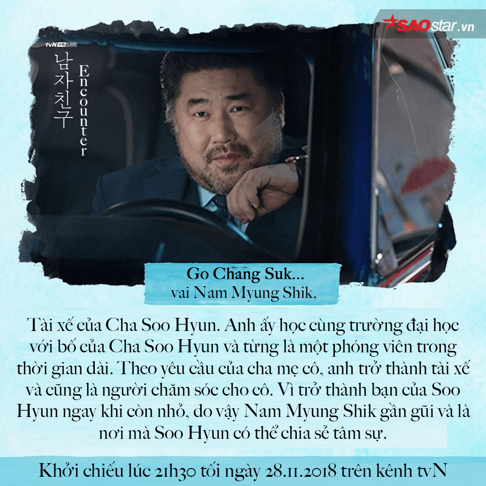 Go Chang Suk: Nam Myung Shik, tài xế của Cha Soo Hyun. Anh ấy học cùng trường đại học với bố của Cha Soo Hyun và từng là một phóng viên trong thời gian dài. Theo yêu cầu của cha mẹ cô, anh trở thành tài xế và cũng là người chăm sóc cho cô. Vì trở thành bạn của Soo Hyun ngay khi còn nhỏ, do vậy Nam Myung Shik gần gũi và là nơi mà Soo Hyun có thể chia sẻ tâm sự.