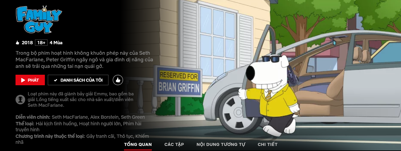Lần đầu được ra mắt vào ngày 31/1 năm 1999, hiện này bộ phim hoạt hình này đã được chiếu đến mùa thứ 17. Family Guy là một bộ phim hoạt hình hài kịch tình huống Mỹ với tác giả là Seth MacFarlane, được phát sóng trên Fox và các kênh truyền hình khác. Bộ phim kể về đời sống của gia đình Griffin gồm 5 người và một chú chó tại thị trấn Quahog, Rhode Island.