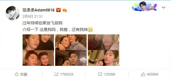Mới đây, vào tối ngày mồng Năm Tết Kỷ Hợi (tức ngày 09/02/2019), Phạm Thừa Thừa khoe ảnh gia đình trên Weibo với lời nhắn: “Ăn tết tiếp tục ở nhà buông lỏng bản thân. Đây là bố em, mẹ em và còn có cả em gái của em nữa”. Có thể thấy trong loạt ảnh đó, anh chàng rất hạnh phúc khi đón năm mới cùng với gia đình mình.