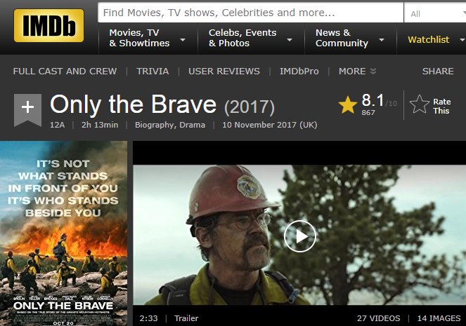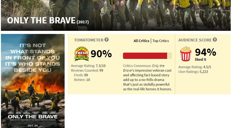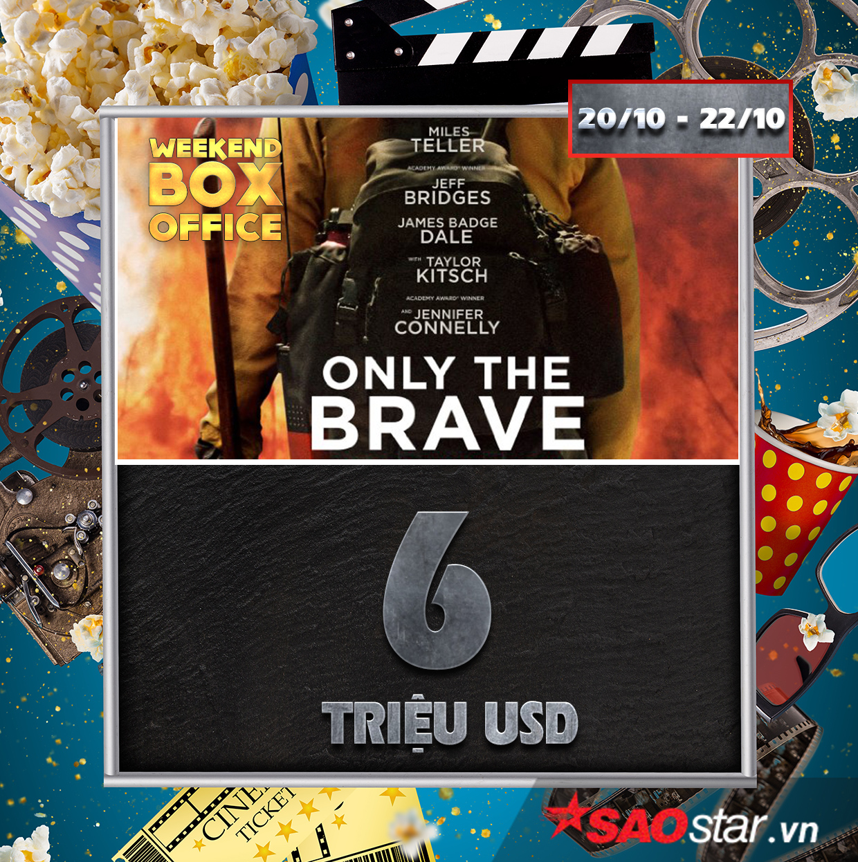 Phim Only the Brave của Sony về vị trí thứ 5 với 6 triệu USD. Đây là cú mở màn khá mờ nhạt của bộ phim có doanh thu 38 triệu USD nhưng bù lại được đánh giá cao về chất lượng. Phim đạt điểm A từ CinemaScore, 73 điểm từ Metacritic. và 74% khán giả trên 25 tuổi. Only The Brave kể câu chuyện của những người lính cứu hỏa, đặc biệt là những trận cháy rừng khủng khiếp tại nước Mỹ.
