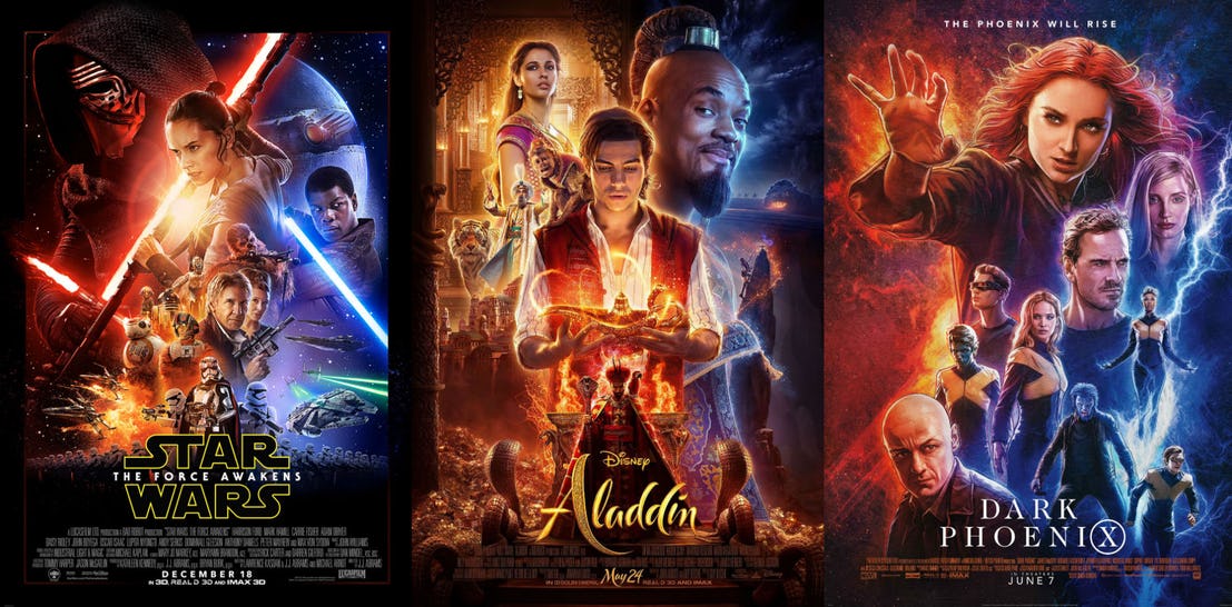Điểm tương đồng thú vị này được một cư dân mạng phát hiện ra và đăng tải những tấm poster kèm theo dòng nhận xét: Có vẻ như Disney đang sử dụng cùng một anh chàng từ bộ phận thiết kế đồ họa. Cụ thể, 3 tấm hình được đem ra so sánh là poster của các bộ phim Star Wars: The Force Awakens (năm 2015), Aladdin và Dark Phoenix.