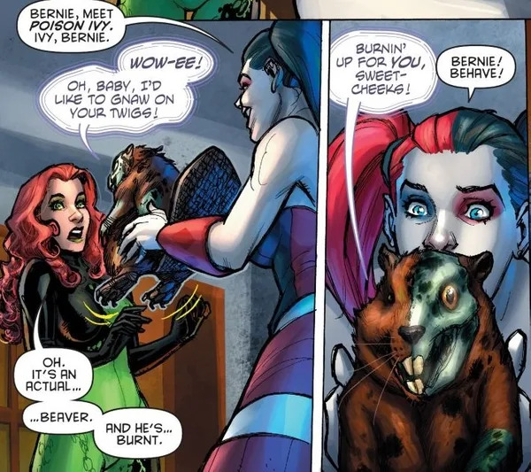 Với câu chuyện liên quan đến “bạn gái cũ” của Joker và biệt độ Chim săn mồi lần này, chú hải ly ấy đích thị chính là Bernie the Beaver - một nhân vật khá thú vị trong truyện tranh DC. Hải ly Bernie là một con thú nhồi bông chính hiệu, ban đầu là tài sản của gia đình nhà Bernie Bash. Cậu Bash này là “crush” đầu tiên của Harley Quinn thời thanh xuân.