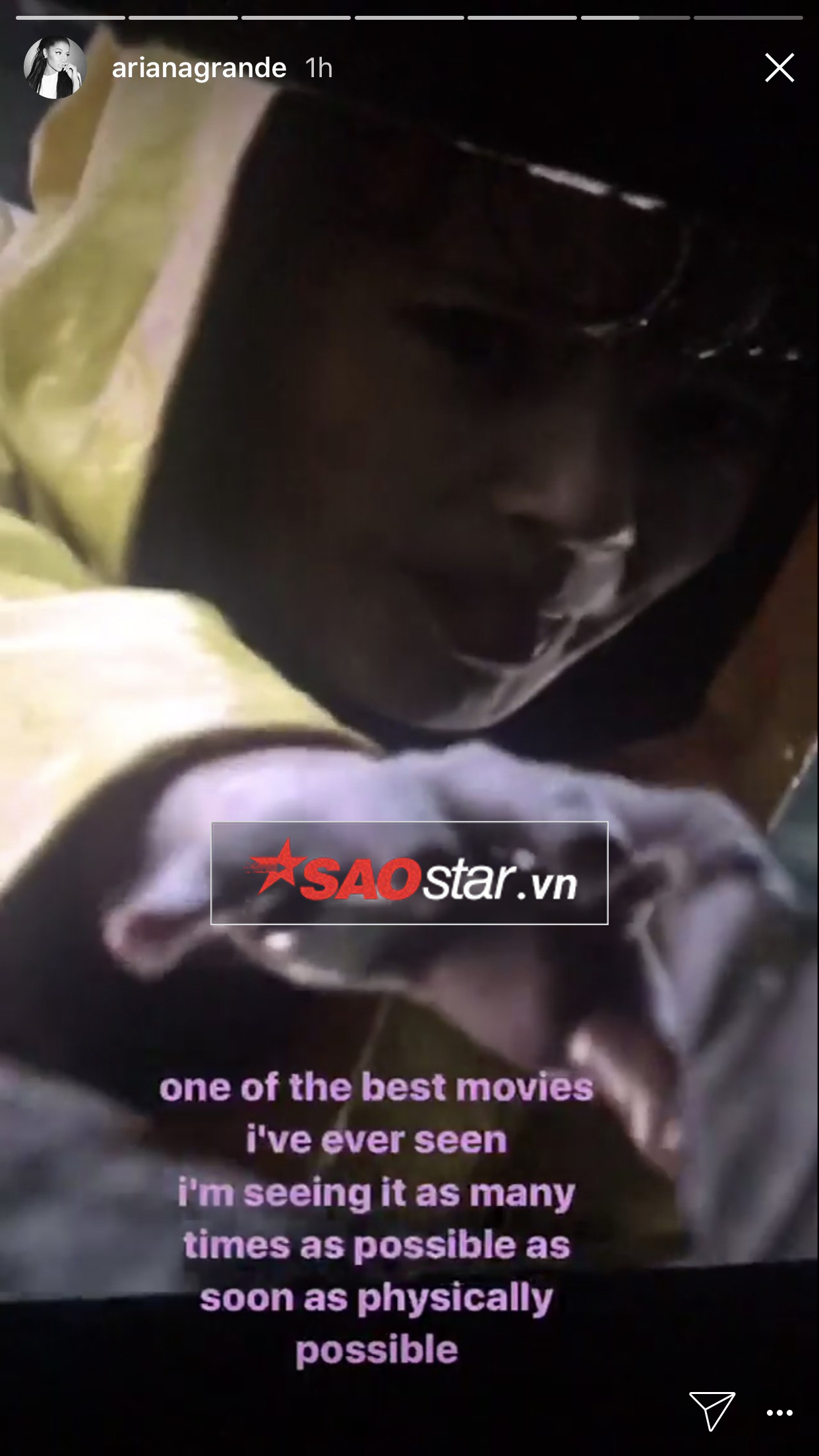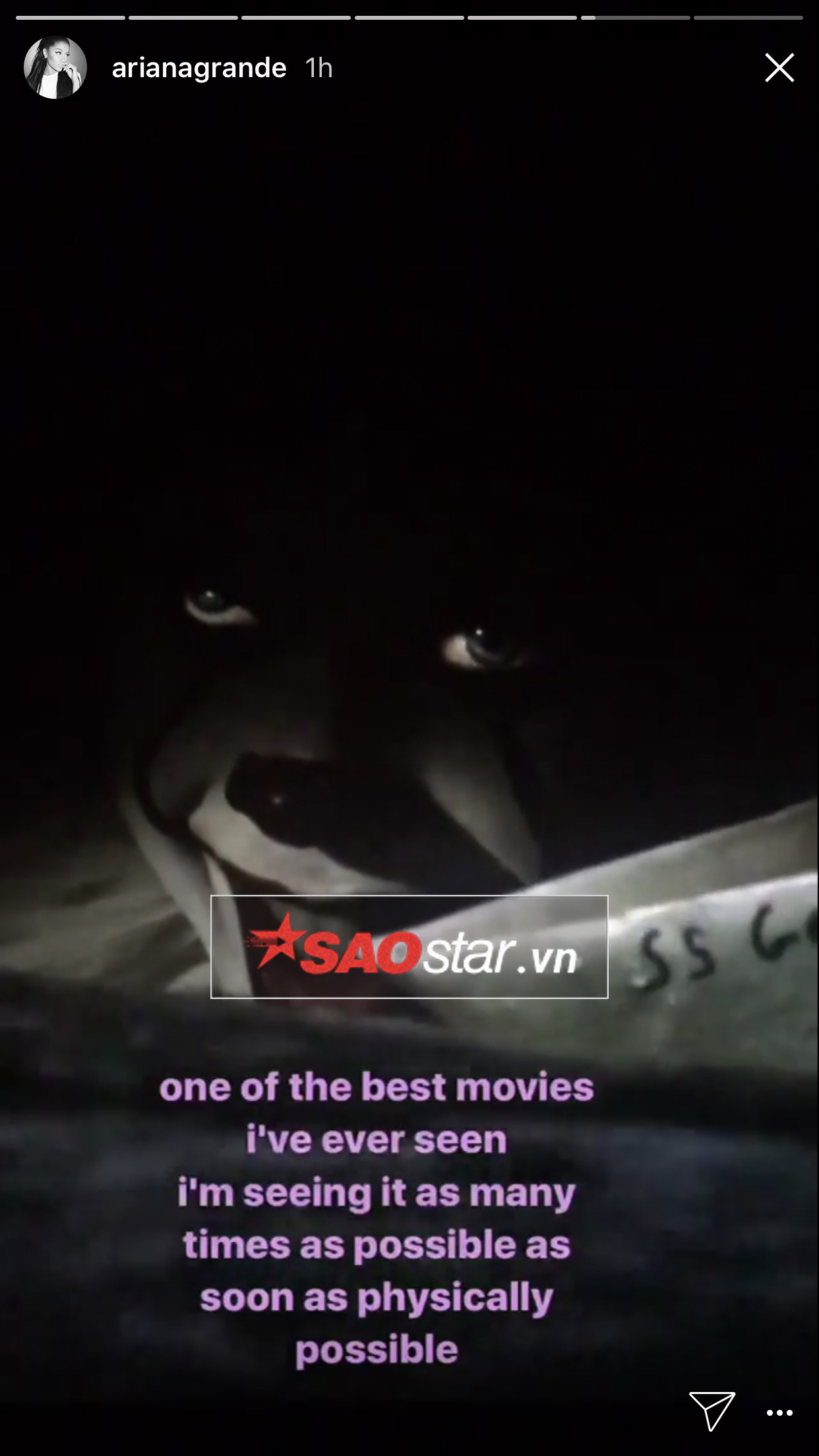 Mới đây, trên Instagram của mình vào khuya ngày 14/09, Ariana Grande đã chia sẻ một đoạn ngắn “quay trộm” trên Insta Story của mình để bày tỏ sự yêu thích dành cho bộ phim. Theo đó, nữ ca sĩ tiết lộ: “Đây là một trong những bộ phim hay nhất mà tôi từng xem. Tôi xem phim này nhiều lần rồi khi có thể”. Được biết, hiện tại Ariana Grande đang ở Singapore, sau một đoạn clip cũng do cô nàng đăng tải trên Insta Story vào tối ngày 13/09 khi đang nghêu ngao hát ở Gardens By The Bay.