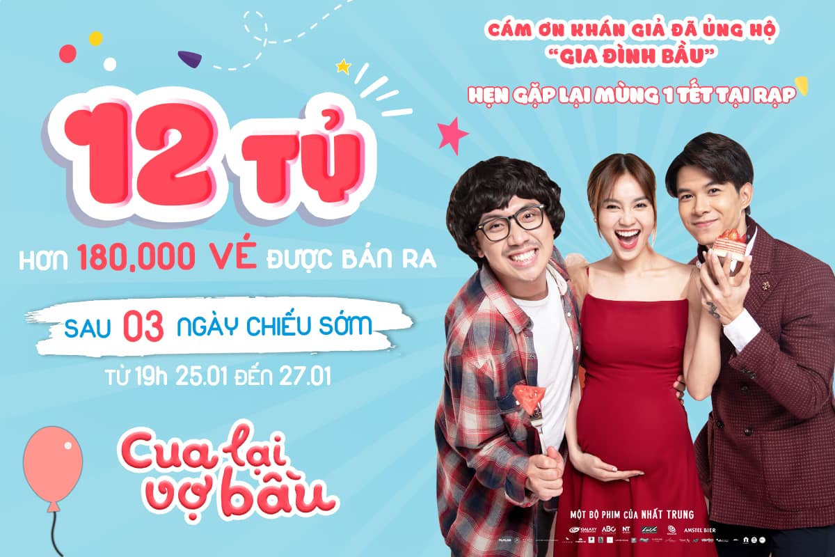 Bộ phim Cua lại vợ bầu cũng sẽ sớm chính thức khởi chiếu vào đúng ngày mồng Một Tết Nguyên Đán.