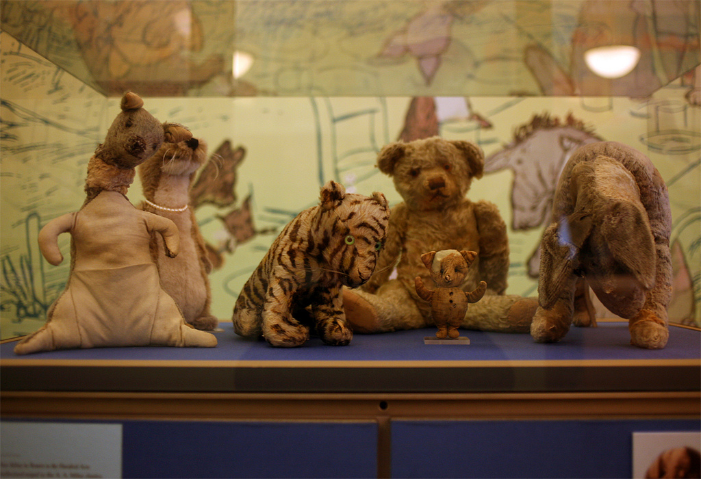 Gấu Pooh lần đầu ra mắt công chúng trong tập truyện ngắn của nhà văn Alan Alexander Milne. Trong truyện, tác giả này biến tất cả thú bông đồ chơi của con trai mình (gấu Pooh, lừa Eeyore, hổ Tigger, heo Piglet,…) thành những nhân vật vui nhộn. Con trai của Milne, cậu bé Christopher Robin cũng xuất hiện trong truyện, trở thành bạn đồng hành của những thú nhồi bông vui tính.