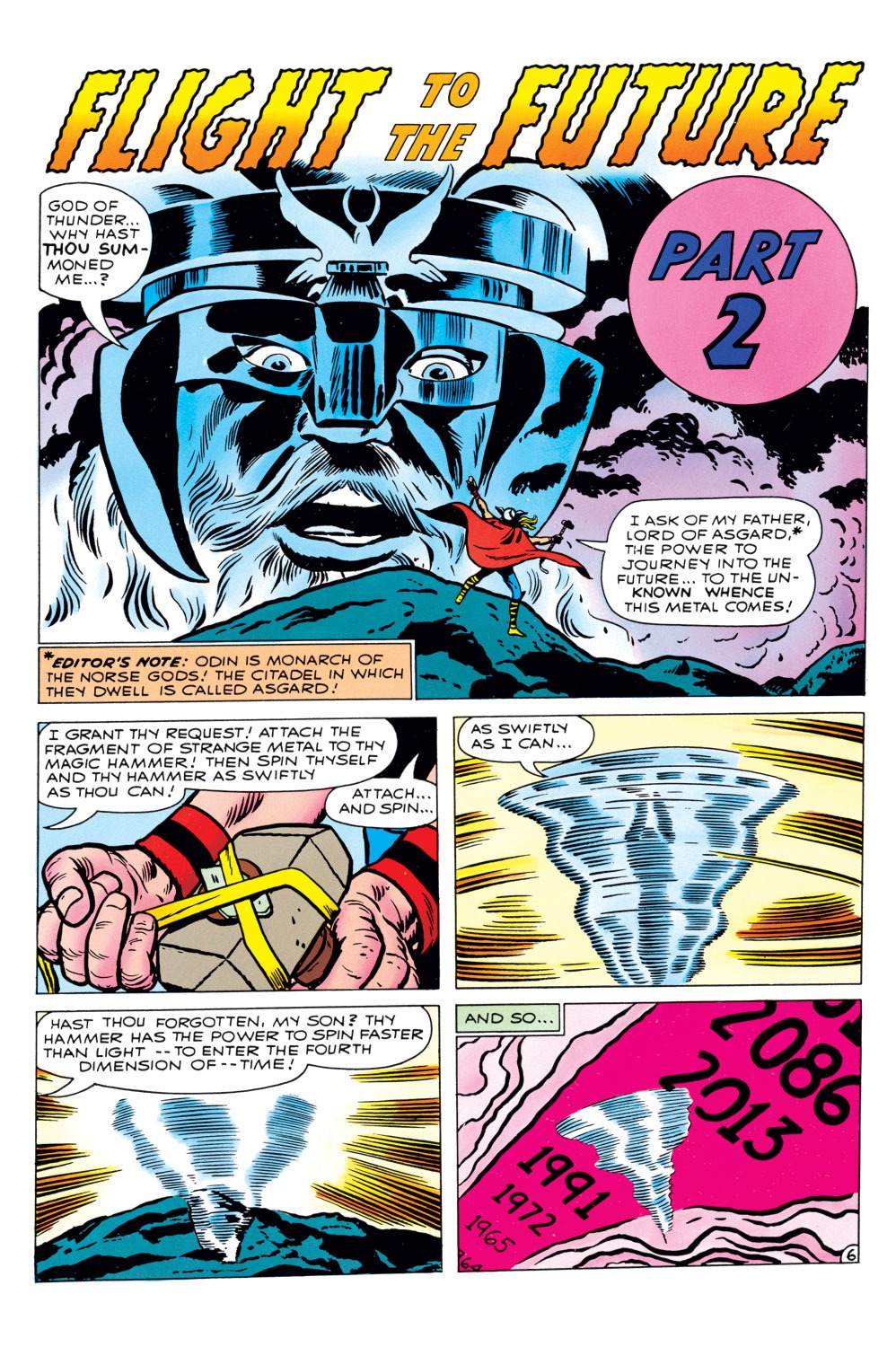 Thor liền bay tới một ngọn núi gần đó, gõ Mjolnir 2 lần xuống đất tạo ra một cơn giông rồi triệu hồi Odin để tìm cách truy đuổi tên tội phạm kia. Odin đã nói rằng Mjolnir đã có sức mạnh du hành thời gian sẵn rồi. Thor chỉ cần cột chặt mảnh vụn tàu vào thanh búa rồi xoay nó nhanh nhất có thể là đã có thể du hành thời gian tới thời điểm anh muốn rồi.