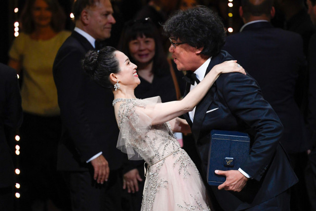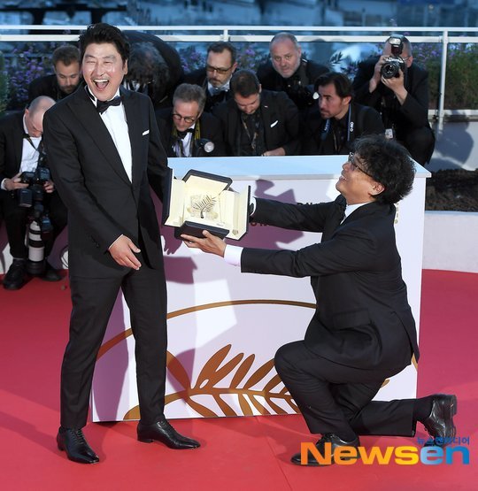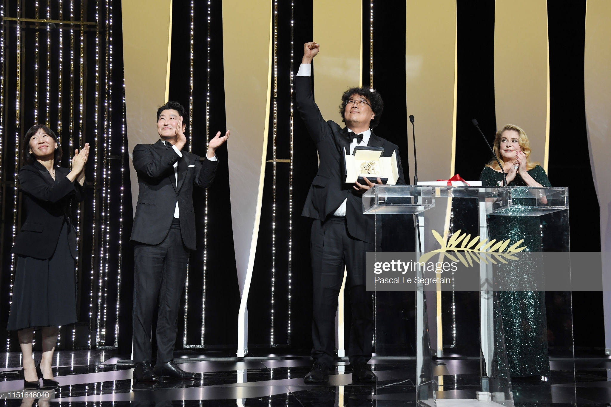 Bong Joon Ho đã lên sân khấu với nam diễn viên chính Song Kang Ho và họ tận hưởng niềm vui khi mang giải thưởng lớn của LHP Cannes về cho đất nước quê nhà. Được biết, đây là lần đầu trong lịch sử ngành công nghiệp điện ảnh Hàn Quốc mới có một bộ phim thắng giải thưởng danh giá tại sự kiện mang tầm cỡ quốc tế như vậy.