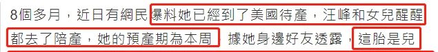 Uông Phong cũng đã tức tốc đến Mỹ vào tháng trước để bầu bạn và chăm sóc vợ tại bệnh viện. Một người bạn của Chương Tử Di tiết lộ nữ diễn viên mang thai một bé trai. Chính vì vậy, Chương Tử Di đặc biệt lo lắng, đối với mọi chi tiết nhỏ nhất đều vô cùng cẩn thận. Cô thuê hẳn một chuyên gia để thiết kế chế độ ăn uống riêng cho mình trong suốt quá trình mang thai và ở cữ sau này.