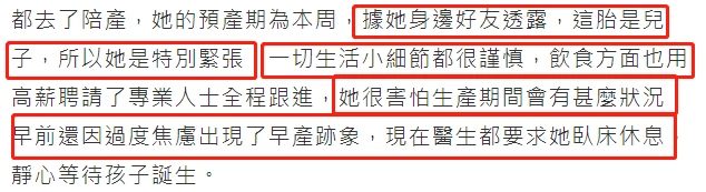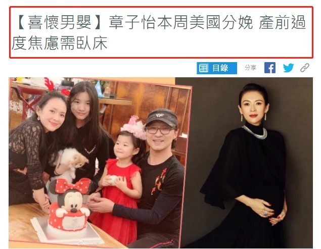 Theo báo chí Hong Kong, Chương Tử Di rất sợ hãi sẽ xảy ra chuyện gì ngoài ý muốn dẫn đến lo lắng cực độ. Bác sỹ cho biết cô có dấu hiệu sẽ sinh non và có thể hạ sinh trong tuần này. Hiện tại, Chương Tử Di đã mang thai hơn 8 tháng,và ở ẩn được hơn 1 tháng nay.