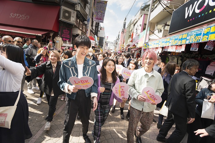 Từ trái qua phải: Sugino Yosuke vai Kugayama Shusei, Kamishiraishi Mone vai Nishimori Aoi và Yokohama Ryuusei vai Kugayama Reon