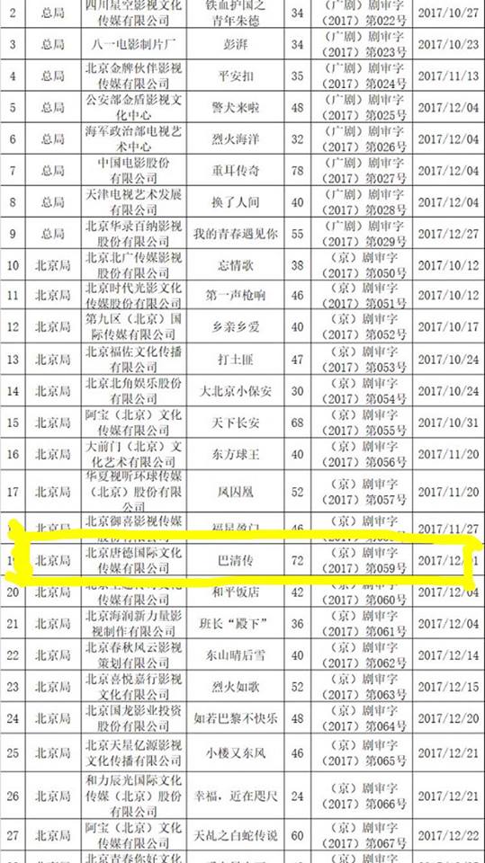 Theo đó, đây là bảng danh sách các bộ phim trình duyệt vào quý 4/2017, đã được thông qua và sẽ được công chiếu trong năm 2018. Danh sách được công bố vào ngày 30/3/2018 này là kết quả của cuộc thẩm tra công khai cuối cùng cho các dự án phim hoàn thành năm 2017, có dự tính công chiếu năm 2018.