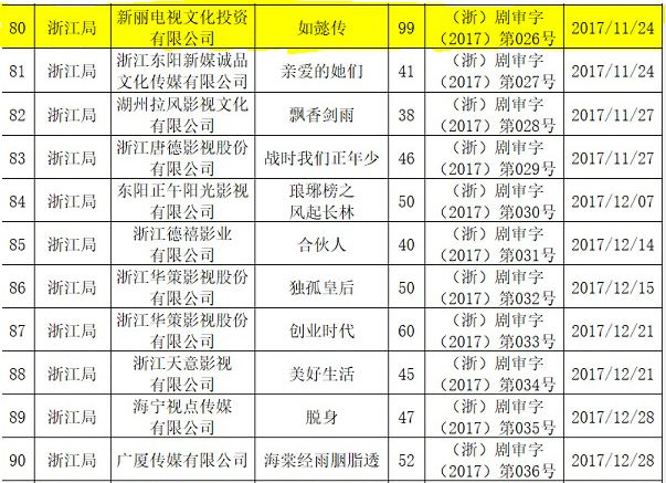 “Như Ý truyện” nằm ở vị trí 80 trên bảng danh sách phim thông qua kiểm duyệt.