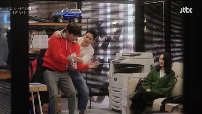 Mặt khác công ty của Yoon Jin Ah sau sự kiện khảo sát về nạn quấy rối tình dục nơi công sở thì đã quyết định tổ chức liên hoan công ty nam nữ ra tách biệt. Phía nữ giới tất nhiên là rất vui vẻ với quyết định này. Mấy chị em đã tổ chức vui chơi tới bến, trong khi đó cánh đàn ông thì tiu nghỉu và bỏ ra về sớm hơn thường lệ.