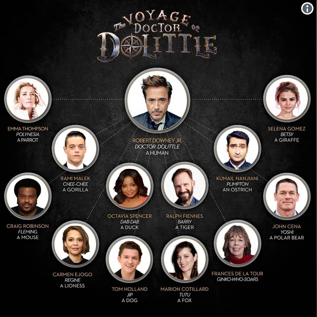 Bộ phim The Voyage of Doctor Dolittle do Stephen Gaghan làm đạo diễn sẽ có một dàn diễn viên lồng tiếng vô cùng hoành tráng gồm có Emma Thompson sẽ lồng tiếng cho chú vẹt của Dolittle - Polynesia, Octavia Spencer lồng tiếng cho chú vịt - Dab Dab, Rami Malek lồng tiếng cho chú gorilla - Chee Chee,… Phim sẽ được phát hành vào ngày 19 tháng 4 năm 2019, và Robert Downey Jr. nói rằng anh mong đợi nó sẽ trở thành một thương hiệu phim ảnh đặc sắc trong tương lai.