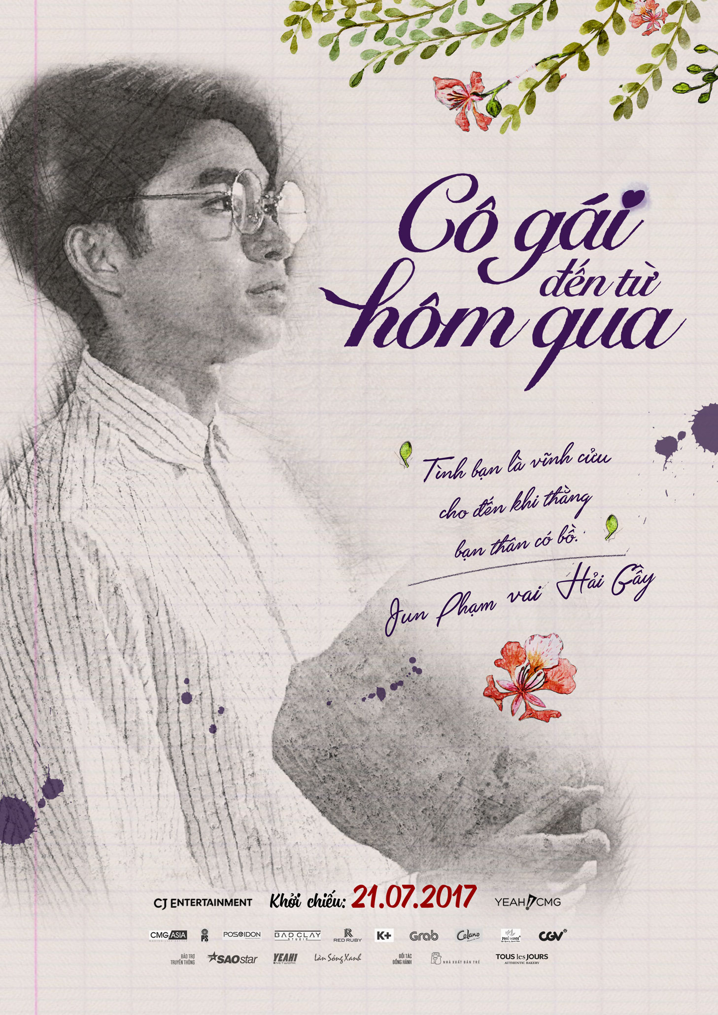 Bộ phim “Cô gái đến từ hôm qua” vừa chính thức “trình làng” khán giả bộ poster nhân vật đầy ấn tượng với tone màu trắng - đen chủ đạo, vừa gợi về hoài niệm, vừa khiến người xem thầm nghĩ “giá như…” về những ngày hôm qua chưa trọn vẹn. Đặc biệt, phong cách “truyền thần” giản dị, mộc mạc trên nền giấy tập kẻ ô , những giọt mực tím , nhành phượng đỏ hay những chiếc lá ép khô càng khiến cả thời “thứ-ba-học-trò” bỗng chốc ùa về, tạo ra một chút gợn nhẹ và chút xuyến xao trong lòng mỗi người.
