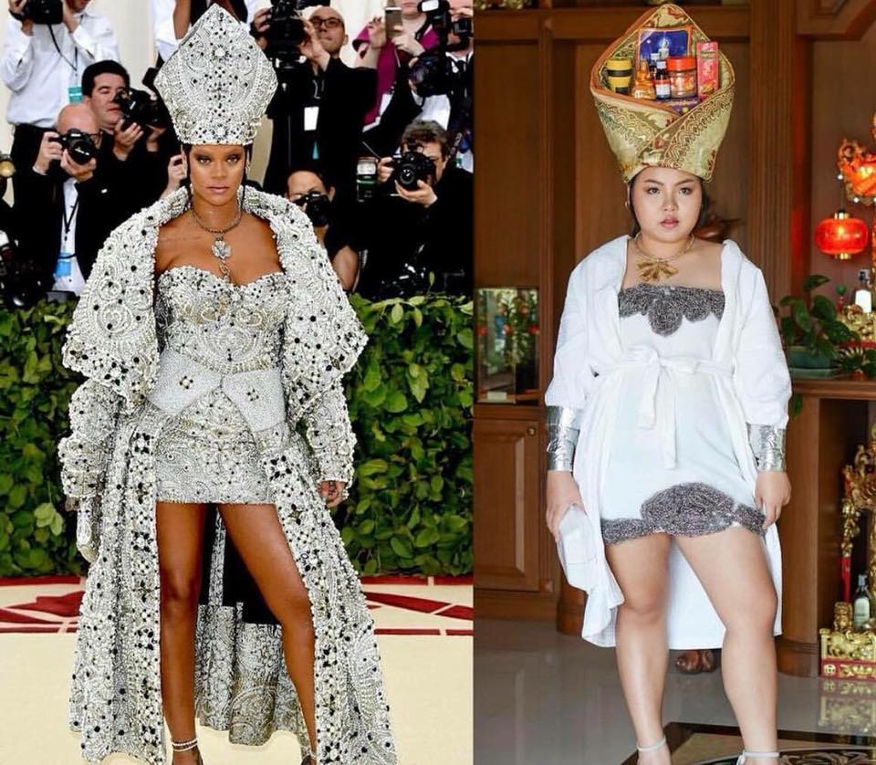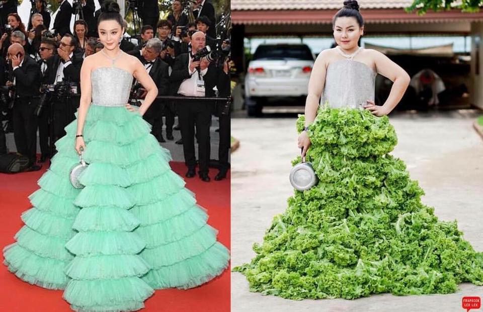 Cô gái trẻ đã thực hiện việc đó vô cùng tài tình khi tự thiết kế riêng cho mình những bộ trang phục làm từ thức ăn cosplay từ những bộ đồ xa xỉ mà các minh tinh thường diện khi đi các sự kiện lớn nhỏ, trong đó có Liên hoan phim Cannes 2018 đang diễn ra. Qua đó ta thấy được rằng sức sáng tạo của một người con gái là vô biên và một khi cô ấy có sở thích ăn uống thì thôi “giồi”!