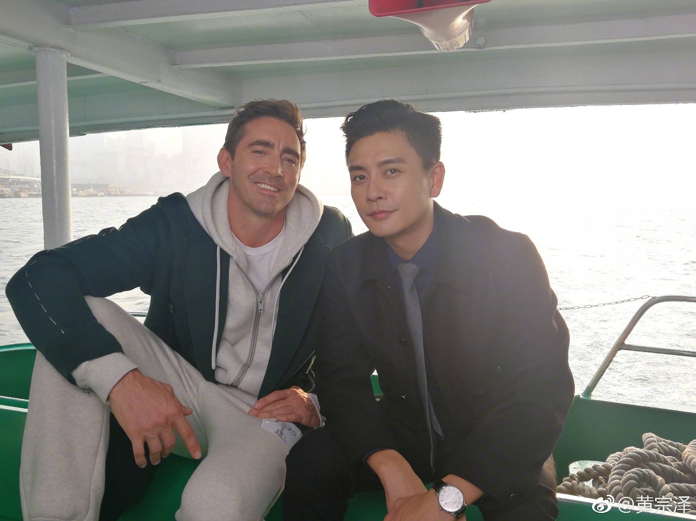 Huỳnh Tông Trạch và Lee Pace khi quay tại Hongkong.